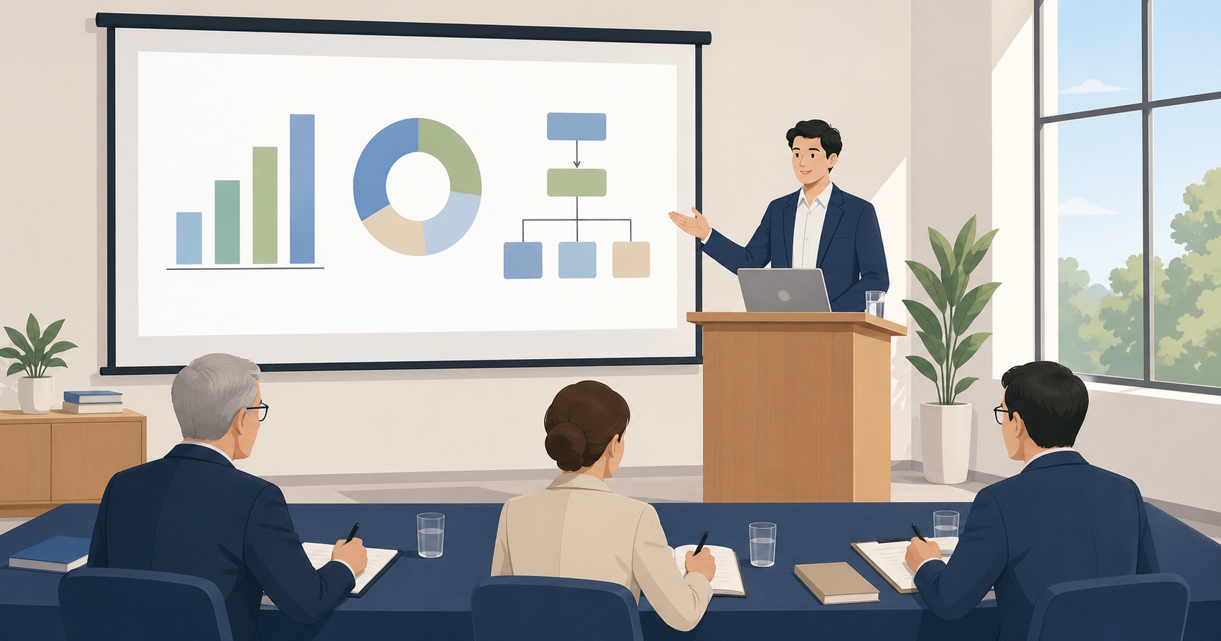 Faça pelo menos três ensaios completos, em voz alta, com cronômetro ligado. No primeiro, você vai descobrir onde a apresentação está longa demais, onde está confusa, onde falta transição entre os blocos. No segundo, ajuste o tempo e a fluidez. No terceiro, confirme que cabe no limite combinado com a banca.